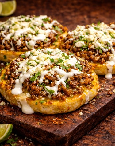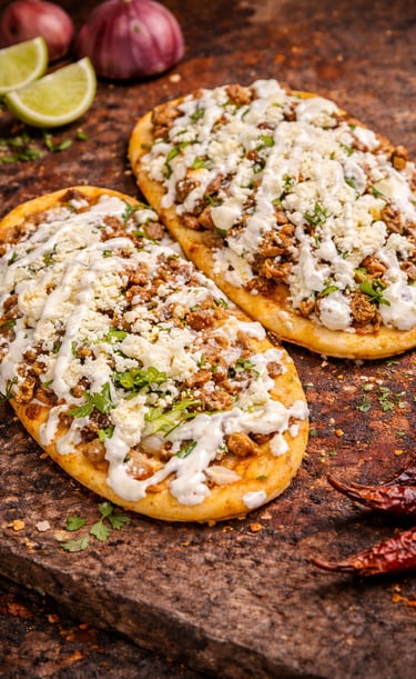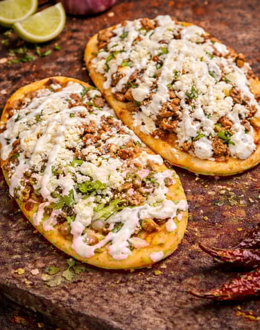 A traditional Mexican favorite made with thick handmade masa, juicy meat, fresh toppings, and rich flavor in every bite.